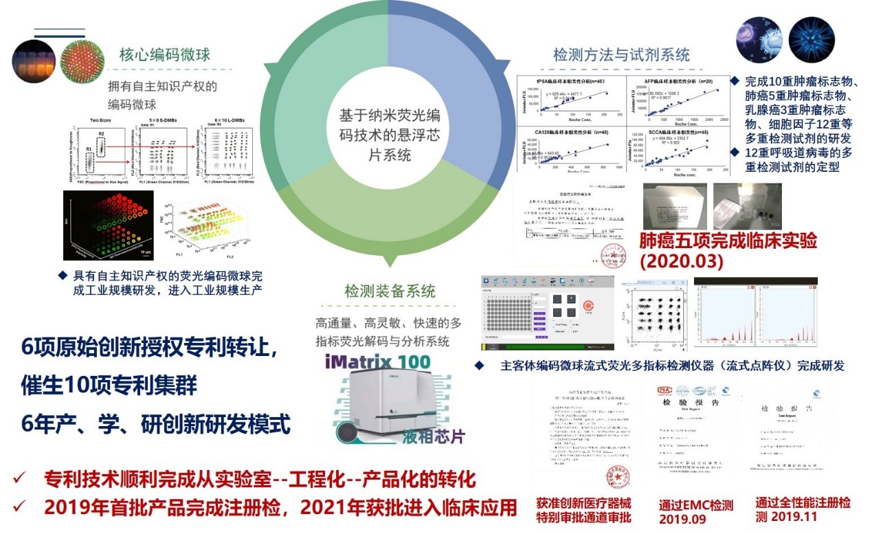 联合实验室首批代表性成果是以开云app官网入口下载苹果版 团队在纳米颗粒可控制备、表面修饰、纳米颗粒与生物分子相互作用等核心技术为基础,发展出新型多指标检测平台技术——基于纳米荧光编码技术的悬浮芯片多指标检测系统,并分别以核酸和蛋白为待测靶标分子实现了单管多重指标联合检测,首批产品进入创新审批,并已完成注册检验与临床试验,拟于2021年上市获得应用。后续第二批代表性成果业已完成试生产,即将进入注册阶段。