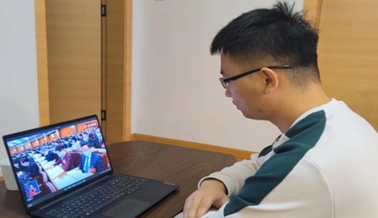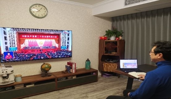学院领导班子成员、党支部书记、教师代表和学生代表线下收看二十大开幕会