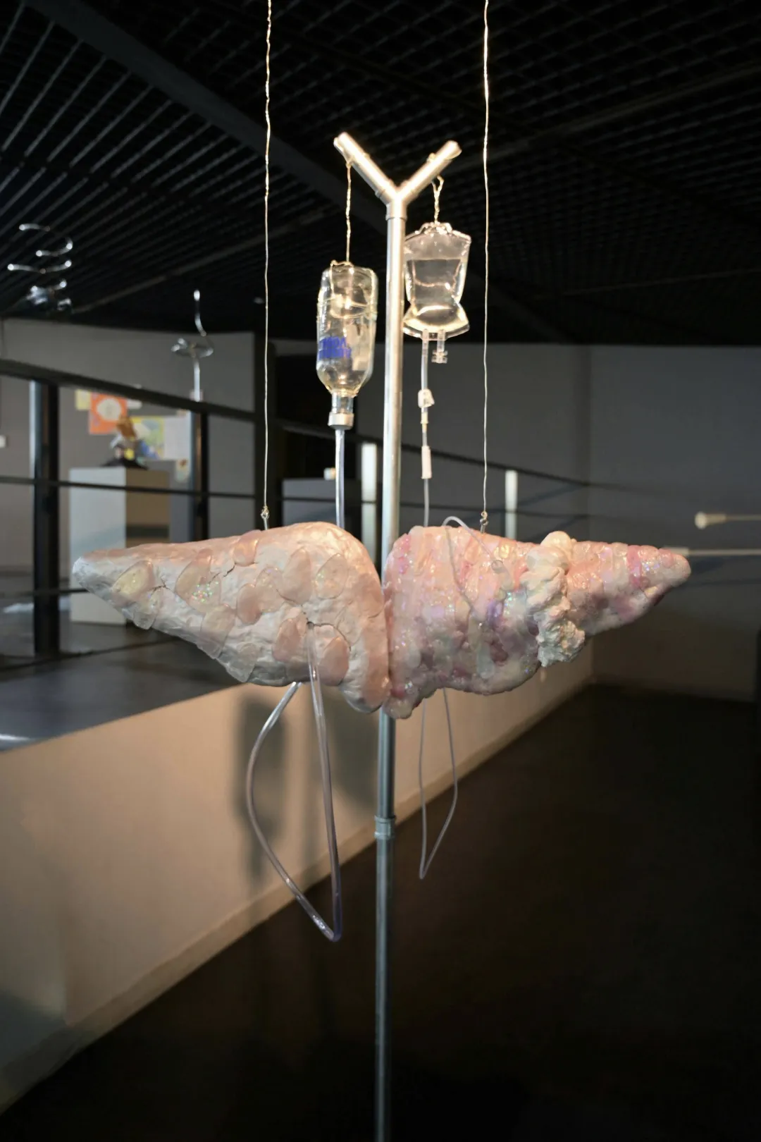 "Fleeting Light" is an art installation that explores time and life. Three blooming purple flowers unfold on a wire frame, their surfaces dotted with bubbles that echo the subtle glow of moss, resembling morning dew. This reveals the silent growth of the flowers. The wire, as a supporting element, imparts a supernatural force to the piece creating a tranquil yet tense space, like the possibility of life pausing in time and continuing infiction, attempting to capture those fleeting yet eternally recurring moments of life.