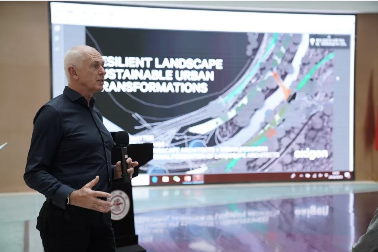 James appreciated the warm welcome by the Department of Landscape Design and CHSLA. His lecture’s main theme was Resilient Landscape: Sustainable Urban Transformations, in which he consistently emphasized the value of nature-based solutions of landscape planning and design. He stated that resilient landscape should respect rules of nature, fully consider matters such as climate changes, and influence the environment. Next, James introduced six experimental programs that he oversaw to illustrate design ideas and approaches for handling climate change, preserving biodiversity, reforming industrial wastelands, urbanization, improving residents’ welfare and sculpting urban landscape structure. James thinks that the functions of landscapes could be compounded and bring forth multiple effects, besides providing a view, it may also benefit economy, society, health, and ecology system.