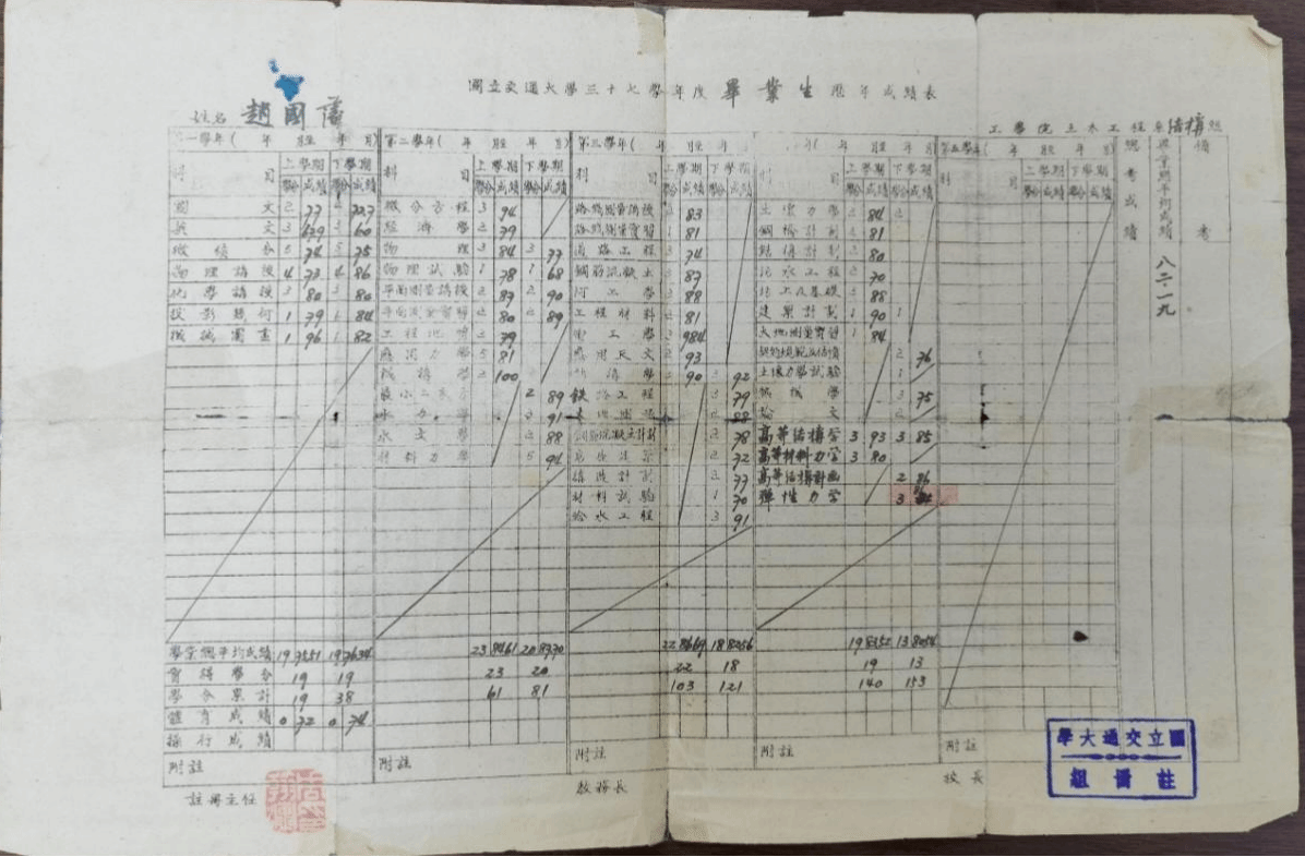 赵国藩在交通大学的成绩表