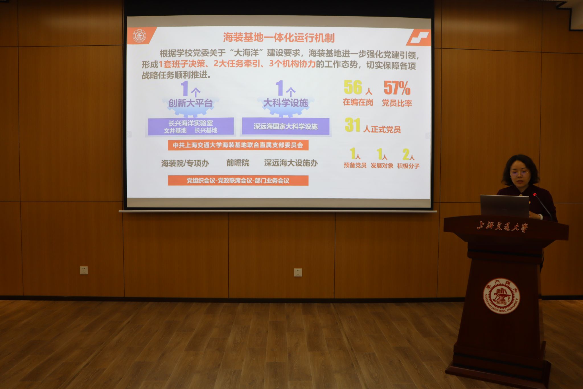 海装院副院长谭华介绍“大海洋”战略整体情况和海装基地党建及业务情况。深远海大科学设施办副主任刘亚东介绍深远海大科学设施建设进展情况。