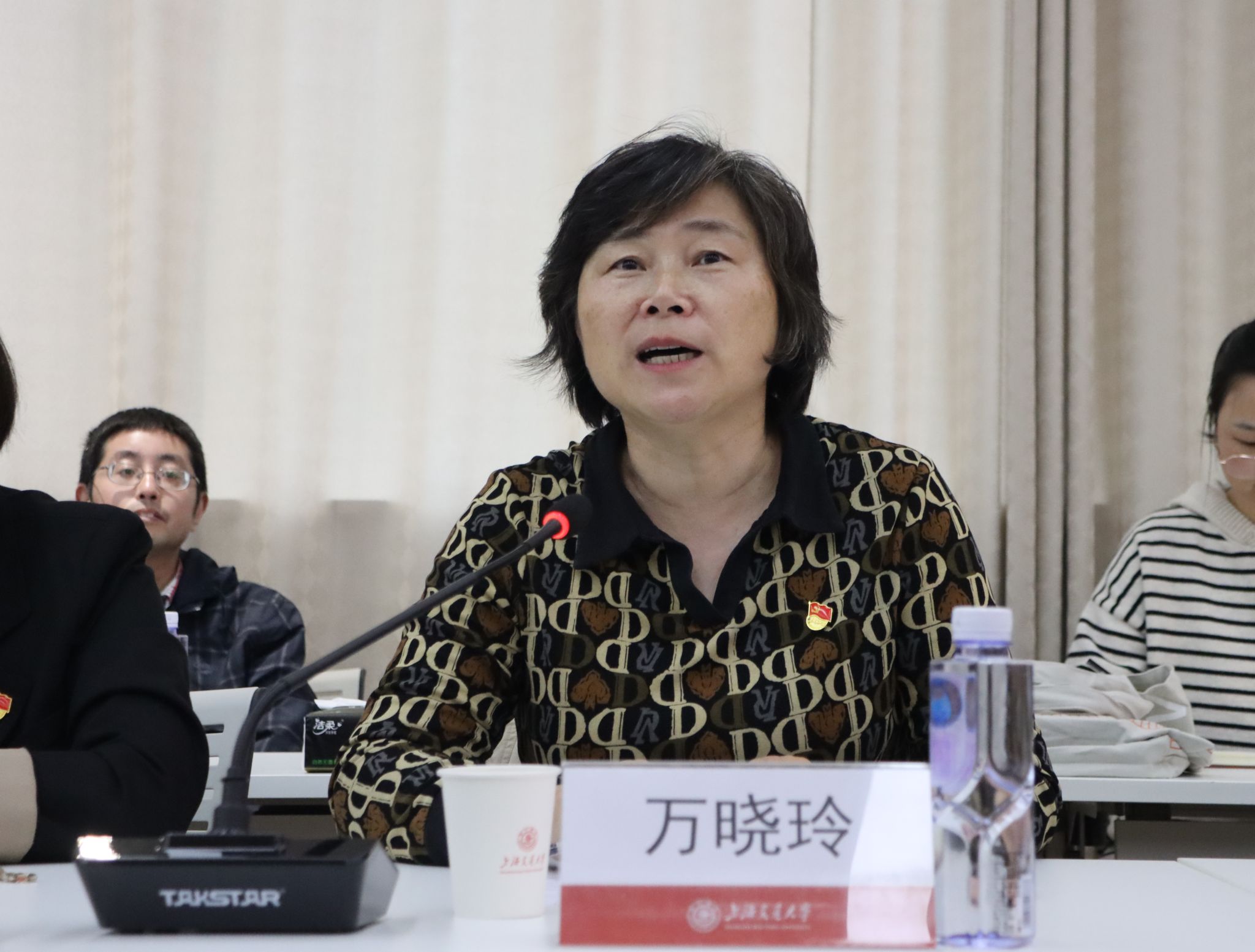 档案文博管理中心党总支书记万晓玲介绍了中心党建基本情况,特别强调深挖档案文博资源,服务教学科研一线。她表示,此次联组学习是档案文博管理中心深入学校教学科研一线,实地感受学校教学科研工作的难得机会。档案文博管理中心始终秉承“构建历史记忆、传承大学文脉”的核心使命,通过整合档案文博资源,努力打造学校文化育人品牌,以党建引领推动学校档案文博事业高质量发展,努力为学校四大专项战略贡献出档案文博人的一份力量