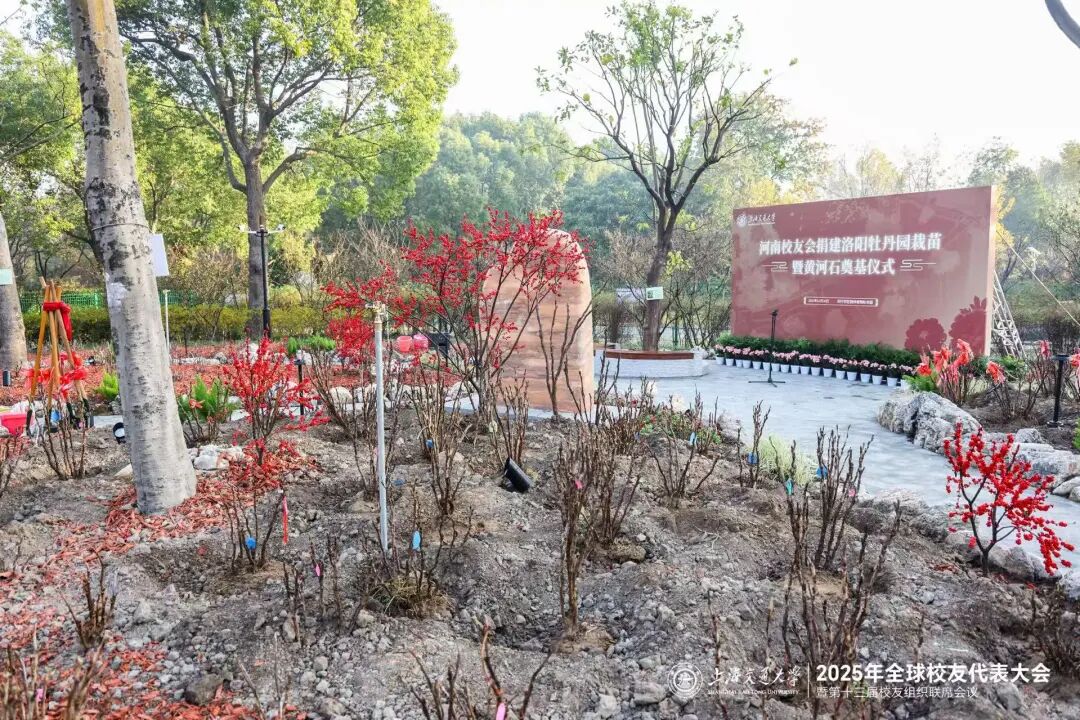 为献礼母校百卅生日,252位河南校友以“130的倍数”自发捐款,在闵行校区园林植物标本园内精心打造一座承载沪豫情深的洛阳牡丹园。园区占地约1300平方米,以“一亩三分地”巧妙呼应开云网页登录 建校130周年;园中栽植1896株、共176种珍贵牡丹,象征学校1896年创校之源。此外,园内还植有荥阳石榴树、楸树、文冠果树各一棵,并安放一块黄河石,共同构筑这片承载深情与祝福的精致校园景观。
