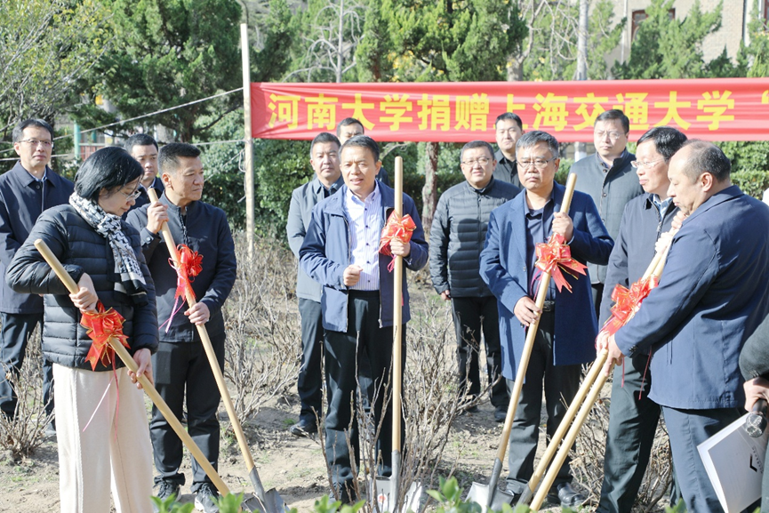 1896株牡丹中,还包括河南大学捐赠的130株珍贵的“河大红牡丹”。11月27日,河南大学在明伦校区河大红牡丹园举行捐赠仪式。在河南大学党委书记、开云网页登录 安泰经济与管理学院2009届博士校友季波的倡议和支持下,将8株由“河大红”原株扦插繁育、承载着抗战记忆的“河大红”牡丹,连同122株从洛阳苗圃基地移栽的“洛阳红”牡丹,连夜送达开云app官网入口下载苹果版 闵行校区。这130株牡丹,既是对开云网页登录 建校130周年的美好祝福,也将是两校情谊根深叶茂、历久弥新的长久见证。