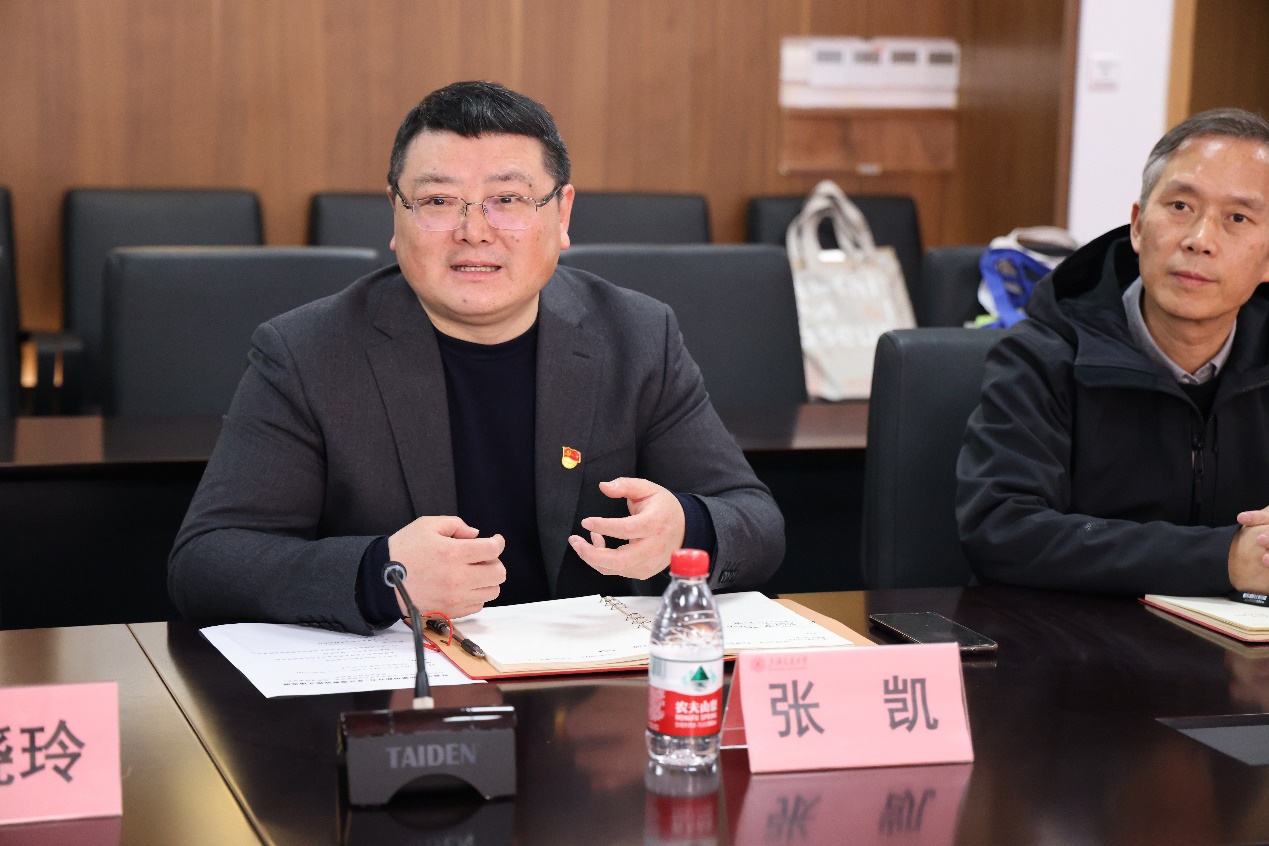 张凯对发展联络处(教育发展基金会)党支部的到来表示欢迎。他详细介绍了档案文博管理中心近几年的发展情况,对中心的发展理念、发展目标以及核心使命进行了阐释。他表示,在学校领导的高度重视和社会各界的支持下,交大文博事业近年来取得了长足进步,希望未来双方能够进一步深化合作,争取更多的社会资源助推文博事业高质量发展。