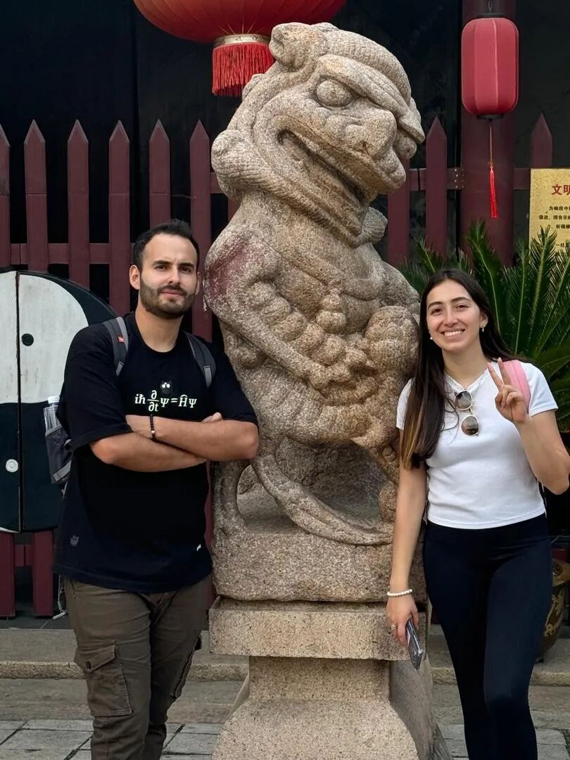 Exploring history and culture. Sebastian and his partner in Zhujiajiao (朱家角), an ancient water town near Shanghai, embodying the cultural exploration that defines their weekends