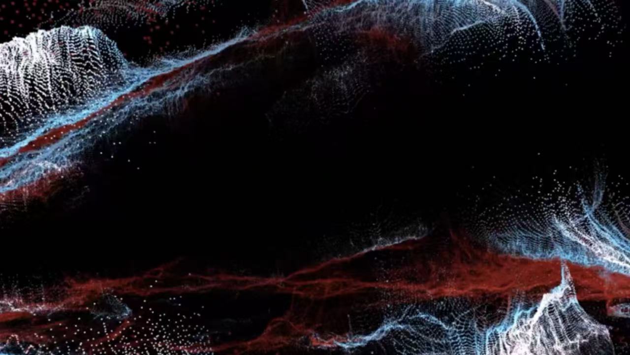 徐础闻分享了其代表作《大脑中的宇宙》(Cosmic in the Brain)。他使用非侵入式脑机接口设备捕捉观众的脑电波,通过傅立叶分解等数学方法将脑电波拆分为伽马、阿尔法、贝塔等不同波段,这些波段对应着注意力、情绪等特征,最终被实时转化为一片动态、绚丽的个人专属星辰视觉图像。