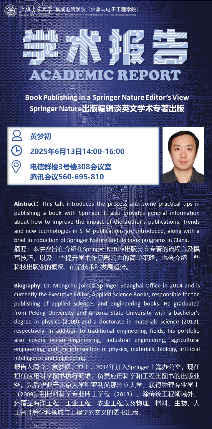 学术讲座 | Springer Nature出版编辑谈英文学术专著出版
