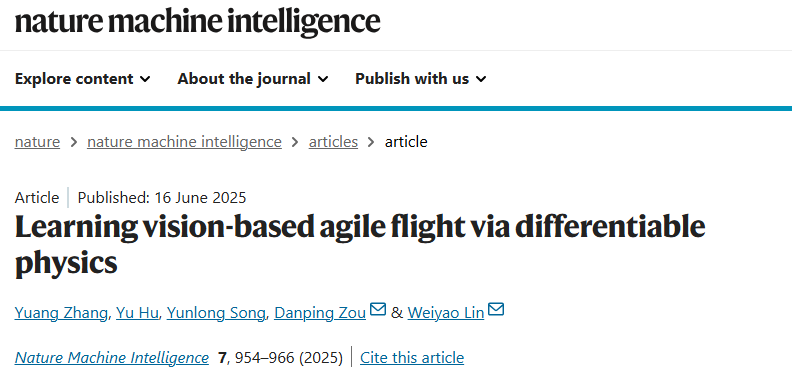 近日,集成电路学院(信息与电子工程学院)媒体信息网络研究所林巍峣教授团队与合作者,在无人机自主导航领域取得重要突破。团队提出并实现了一种基于可微分物理的端到端视觉控制策略,首次将可微分仿真训练的策略成功部署至真实无人机系统中,实现了单机最高20m/s的避障以及多机集群的复杂任务。相关研究成果以“Learning vision-based agile flight via differentiable physics”(通过可微分物理学习基于视觉的敏捷飞行)为题发表于Nature Machine Intelligence。