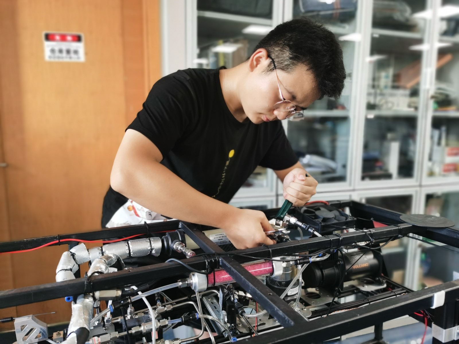 在科研学习生活中,张忠豪从老师“我们要做就去做有意义的事情”的指导中深受启发,立志要去“做有用的研究”,积极参与到科技研究成果落地的工作中。