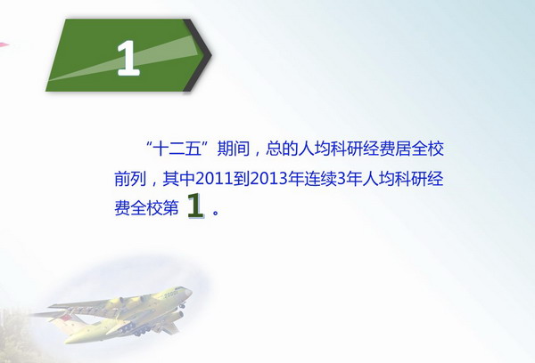特色成果有:飞机减阻、防冰;材料与结构检测;综合环境监视;人为因素;综合航电信息系统;叶轮机推进;通用航空飞行器;临近空间新构型飞行器;高速热防护与推进;微小卫星;卫星导航;卫星编队控制;空间操作等。