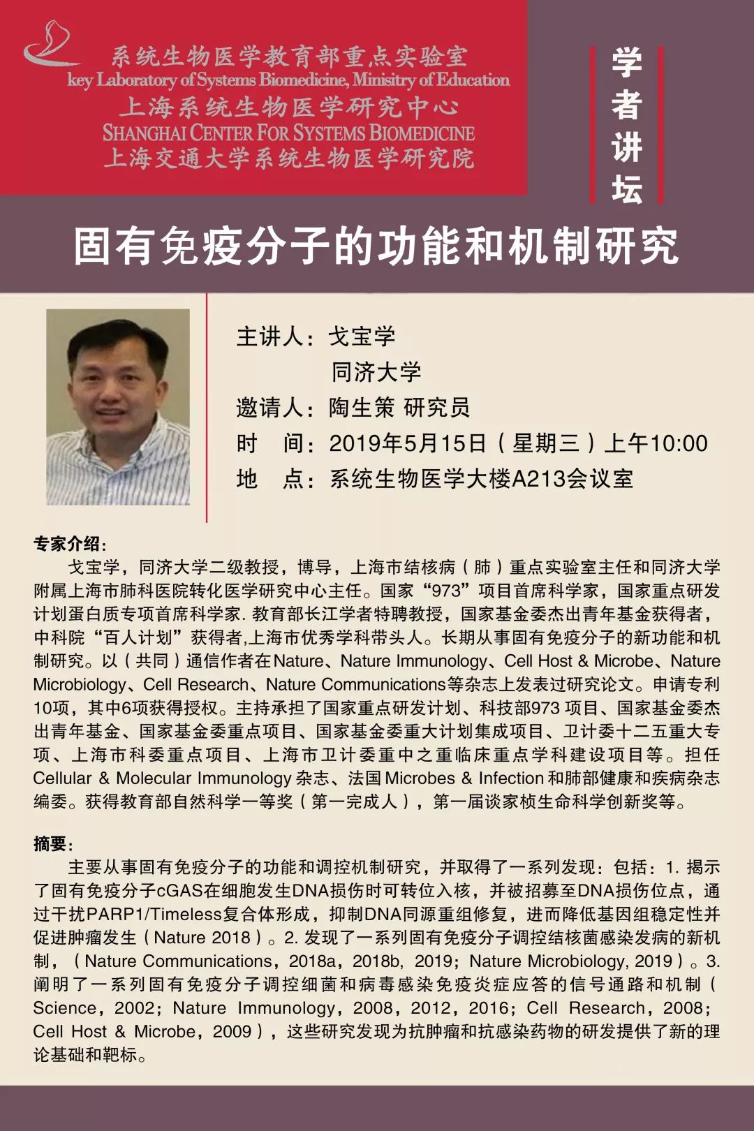 戈教授是上海市结核病(肺)重点实验室主任和同济大学附属上海市肺科医院转化医学研究中心主任,国家“973”项目首席科学家,国家重点研发计划蛋白质专项首席科学家,教育部长江学者特聘教授,国家基金委杰出青年基金获得者,中科院“百人计划”获得者,上海市优秀学科带头人。长期从事固有免疫分子的新功能和机制研究。以(共同)通信作者在Nature、Nature Immunology、Cell Host & Microbe、Nature Microbiology Cell Research、Nature Communications等杂志上发表过研究论文。申请专利10项,其中6项获得授权。主持承担了国家重点研发计划、科技部973 项目、国家基金委杰出青年基金、国家基金委重点项目、国家基金委重大计划集成项目、卫计委十二五重大专项、上海市科委重点项目、上海市卫计委重中之重临床重点学科建设项目等。担任Cellular & Molecular Immunology杂志、法国Microbes & Infection和肺部健康和疾病杂志编委。获得教育部自然科学一等奖(第一完成人),第一届谈家桢生命科学创新奖等。