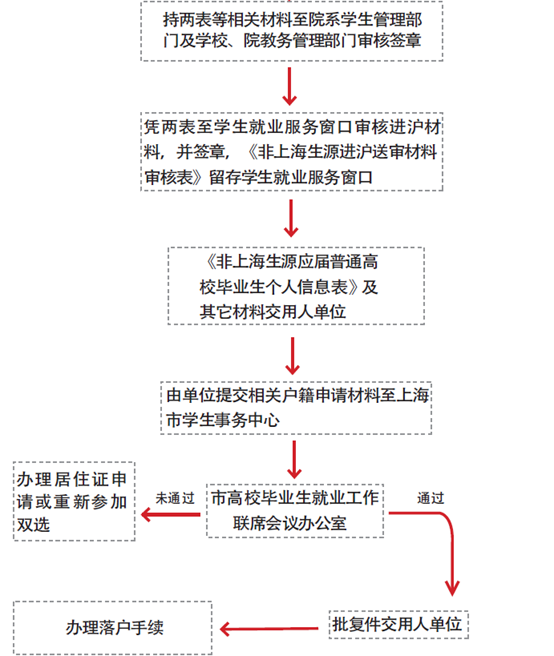根据上海市教育委员会、上海市发展和改革委员会、上海市人力资源和社会保障局和上海市公安局联合发布的《关于做好2023年非上海生源应届普通高校毕业生进沪就业工作的通知》(沪教委学〔2023〕23号)(附件1)的文件精神,现将落户材料的校内办理流程整理如下,供同学们参考。