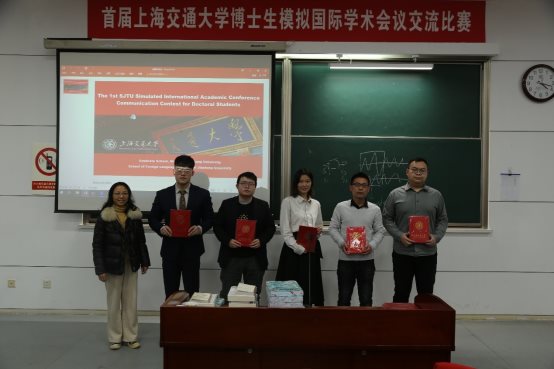 On the afternoon of December 15, 2021, the first Shanghai Jiao Tong University (SJTU) simulated international academic conference communication conteset for doctoral students with the theme of "Learn Academic English, Tell Chinese Academic Stories", which was jointly hosted by the School of Foreign Languages(SFL) and Graduate School of SJTU, was successfully held in Room 121 of Chen Ruiqiu Building on Minhang Campus. Gui Lin, Vice Dean of Graduate School of SJTU, and Li Hongde, Director of Postgraduate College English Division of SFL, and Yang Xiaohong, its Deputy Director, attended the contest.