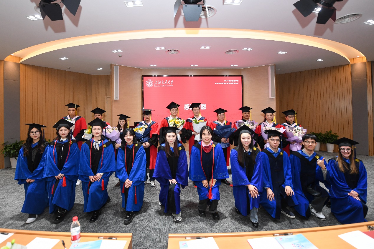 Ding Jian and Shang Biwu presented certificates to and took a group photo with Shanghai Jiao Tong University Outstanding Graduates..