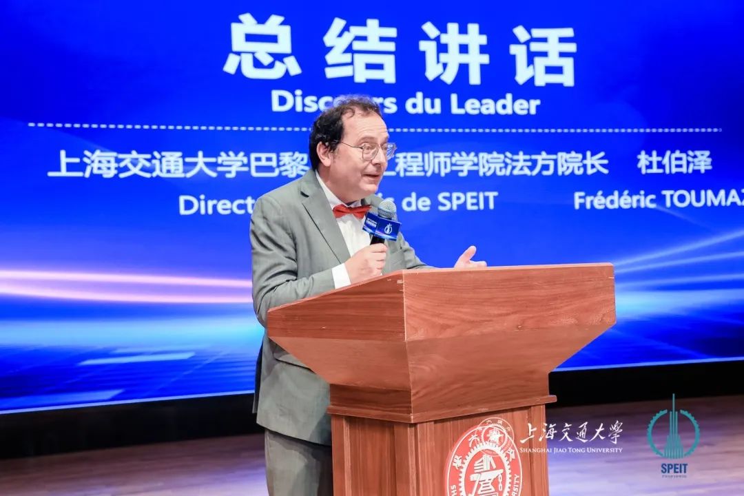 Frédéric TOUMAZET, Dean of the Shanghai Jiao Tong University Paris Institute of Technology (SPEIT), concluded with his speech. He remarked that all contestants demonstrated exemplary courage and determination, expressing their views and defending their beliefs fluently in French on the "Excellence Cup" stage. French has a rich history and diversity, serving not only as a means of communication but also as a bridge between cultures, fostering dialogue and mutual understanding. This year marks the 60th anniversary of diplomatic relations between China and France, which is of great significance. This speech competition continues the tradition of dialogue and cooperation between China and France. He emphasized that eloquence is a basic skill in daily life that can influence others, unite people, and overcome differences. The contestants' outstanding performances vividly demonstrate that language learning and cross-cultural communication are keys to a harmonious future, contributing bricks to the international peace and cooperation. He believed that the openness, dialogue, and mutual respect displayed in today's competition can serve as a guiding principle for personal and professional life, hoping that more people can continuously improve their speech skills to build a better world.