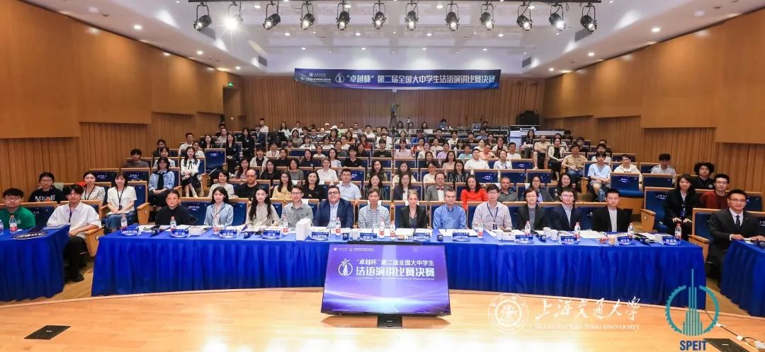 On May 25th, the national semifinals and finals of the second "Excellence Cup" national high school and middle school French speech competition were grandly held at the Minhang Campus of Shanghai Jiao Tong University. The theme of this competition was "Technology Illuminates the World." Fourteen university contestants from Beijing University of Chemical Technology, Beijing Foreign Studies University, Nanjing University, Shanghai University, Shanghai Jiao Tong University, and Shanghai International Studies University, as well as four middle school contestants from Chengdu Foreign Language School, Chongqing Foreign Language School, and Nanjing Foreign Language School, participated in the national semifinals. They delivered three-minute prepared speeches and answered judges' questions for two minutes. Ten university contestants and three middle school contestants advanced to the finals. At the finals, they delivered splendid speeches on topics such as "Technological Innovation and Global Development" and "Cultural Inheritance and Innovation."