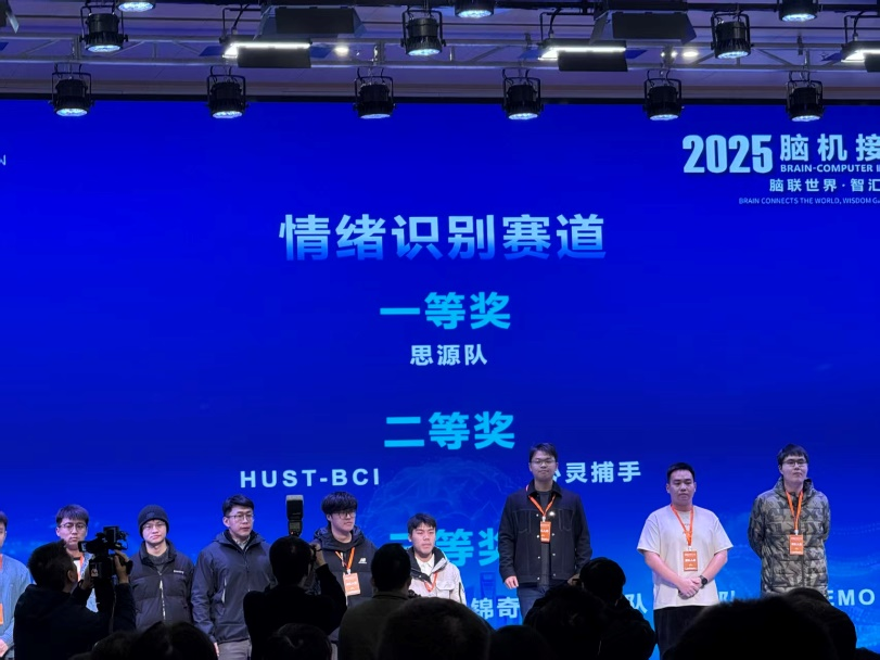 12月4日至5日,以“脑联世界·智汇上海”为主题的2025脑机接口大会将在上海市“脑智天地”脑机接口未来产业集聚区举行。本次大会由上海市科学技术委员会联合闵行区人民政府、脑机接口产业联盟主办,包含开幕式暨主论坛、开发者大会、脑机接口竞技赛、展览体验、8场分论坛和多场新品发布会。开云网页登录 计算机学院通用人工智能研究所BCMI实验室郑伟龙副教授指导的“开云网页登录 思源队”获得脑机接口竞技赛情绪识别赛道冠军(一等奖)。参赛队员是刘轩豪、史涵雯、刘彦楷、戴仁杰和王政等五位博士研究生。