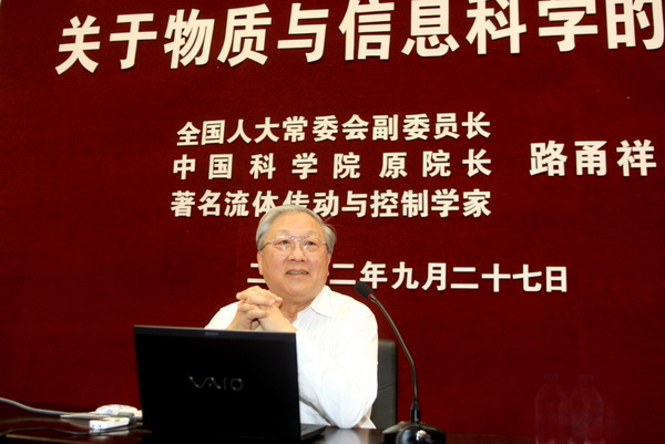 路甬祥回顾展望了物质与信息科学发展的历程,分析了它们的本质与时代特征,并指出面临的挑战和未来的趋势。在物质科学方面,路甬祥指出,过去半个多世纪以来,物质科学并未发生新的重大突破,其进展主要表现为相对论、量子论、结构化学、催化理论等的推广应用,但是这并不意味物质科学发展已走到了尽头,它仍面临着一些重要理论与实际问题亟待发现和解决。路甬祥表示,当代科技发展和经济社会的迫切需求,将影响物质科学未来发展的方向,物理、化学的基础核心地位不会动摇,其重心将转移到量子调控以及能源、信息等相关领域,将关注与生命科学的交叉。在信息科学方面,路甬祥提出,已有的集成电路技术在未来15-20年可能将走到尽头,已有网络框架和互联网协议已不能适应未来网络发展的需要。人类将全面进入信息网络社会和知识文明时代;信息网络将成为经济社会最重要的基础设施和公共资源,成为国家、社会法人和个人重要的生存发展平台;人人将成为信息科技的使用者和信息科技价值的创造者;信息科技将进入信息网络、物理世界和人类社会三者动态交互、全面融合的时代。在这种新的形势下,信息科技必须有新的突破和发展。