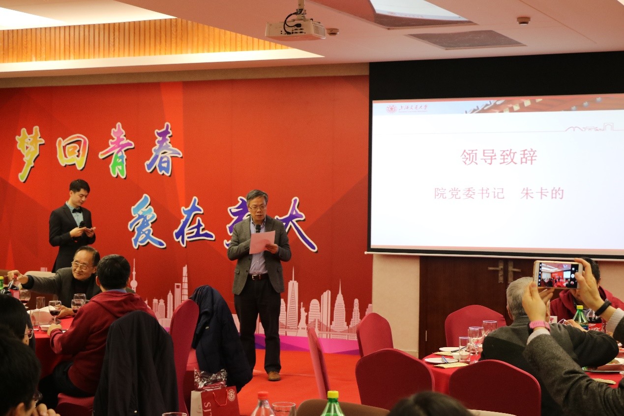 学院党委书记朱卡的致辞。他首先对在座的老领导、老教师以及远道而来的校友们表示热烈的欢迎与衷心的感谢!他说学院校友工作的快速发展里不开各位校友的支持,号召校友们在90周年院庆时返回母校。随后,他从人才培养、科研进展、教师队伍建设、校友工作等几个方面向来宾和校友们介绍了学院在2017年的发展情况。