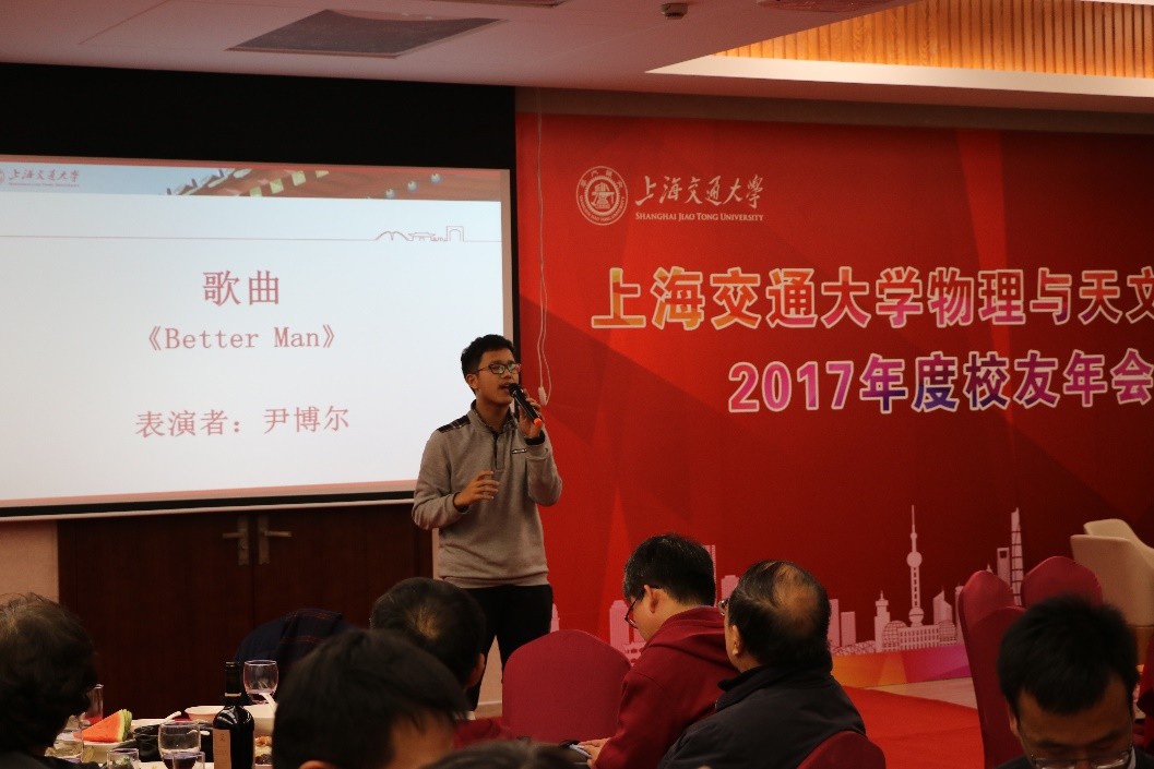 物理与天文学院2017年度校友年会在《难忘今宵》的歌声中圆满落幕,校友们的共同青春回忆,在这样一个不眠之夜共同被唤起,校友会搭建的互动平台,让更多校友参与其中,学院校友会也将继续锐意进取,进一步促进校友、学院、学生的共同发展。
