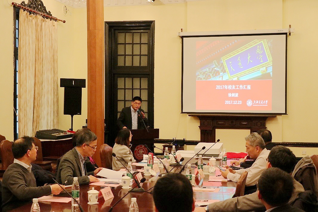 徐剑波在会上做2017年校友工作汇报。他分别从走访校友企业、接待校友返校、举办校友活动、校友助力学生成长等几个方面介绍了学院在2017年的工作开展情况,并详细汇报了校友捐赠基金在2016、2017年的使用情况。同时,他还介绍了下一年度校友服务项目、校友捐赠项目、校友工作机制及九十周年院庆设计等几个方面内容,最后他再次感谢校友在过去一年中对学院的关注与支持。