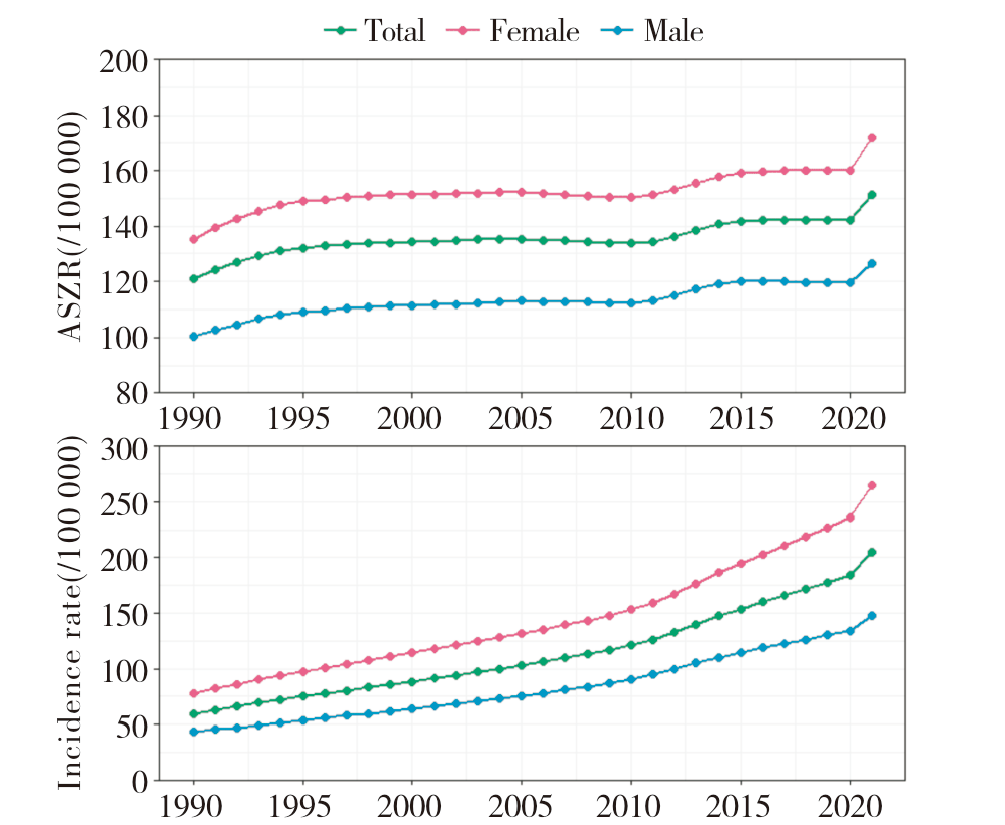 | Gender | Incidence(n) | IR(/100 000) | ASIR(/100 000) |