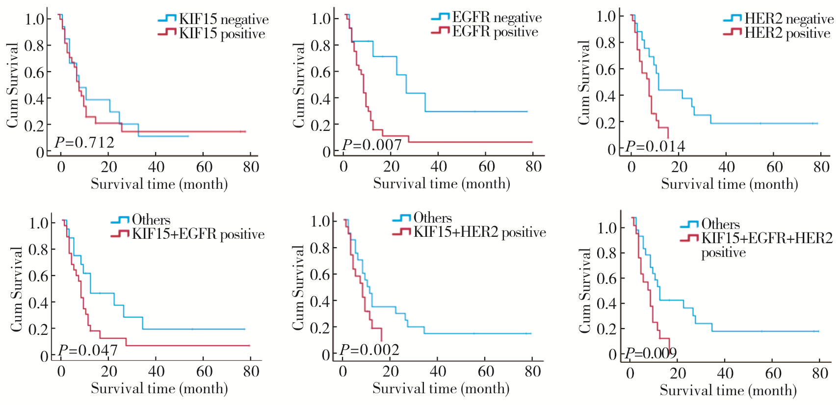 | Features | No. of patients | KIF15 | EGFR | HER2 | |||||||||||